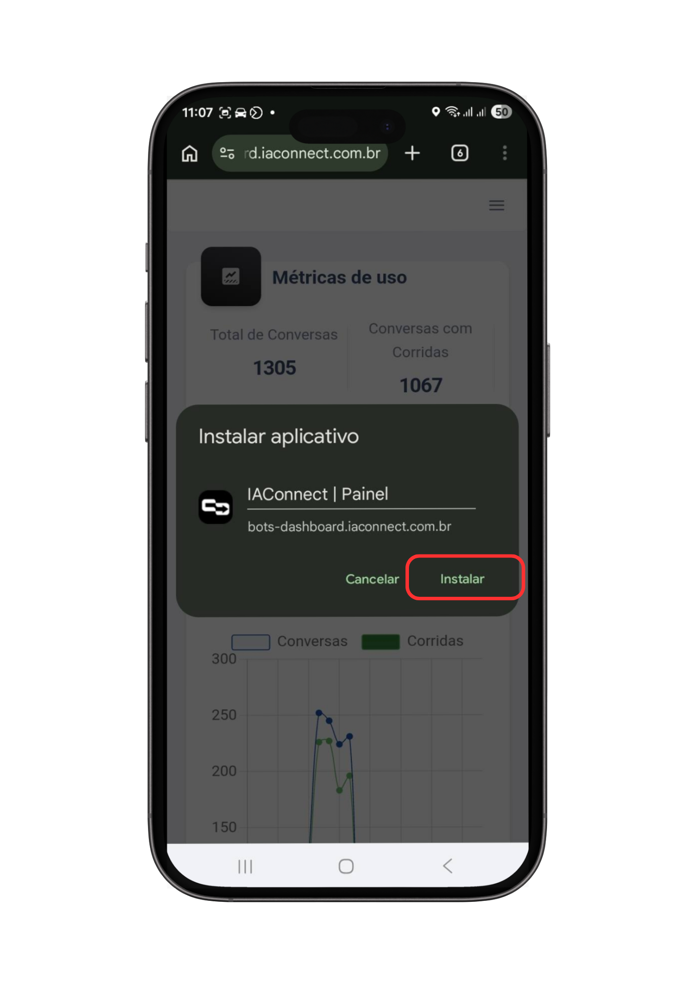 O acesso rápido ao painel permite que você adicione o painel do IAGo diretamente à tela inicial do seu celular, facilitando o acesso sempre que precisar acompanhar a operação.