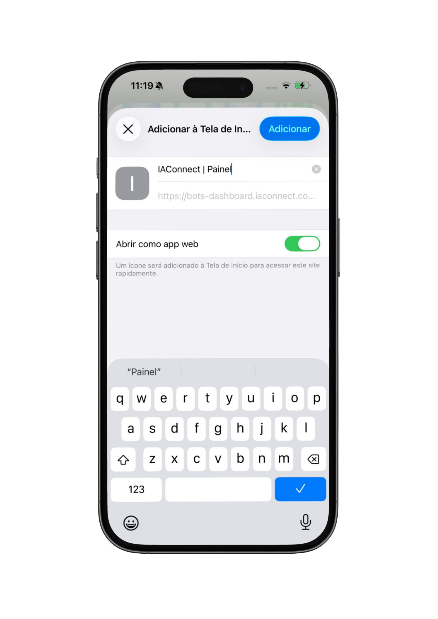 5. Edite o nome (Ex.: Painel IAGo) Toque em Adicionar e confirme